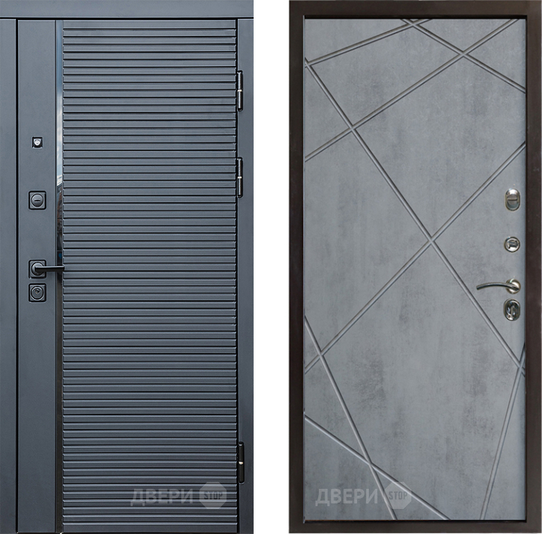Входная Дверь Престиж Черная Линия Лучи Бетон темный 960x2050 мм